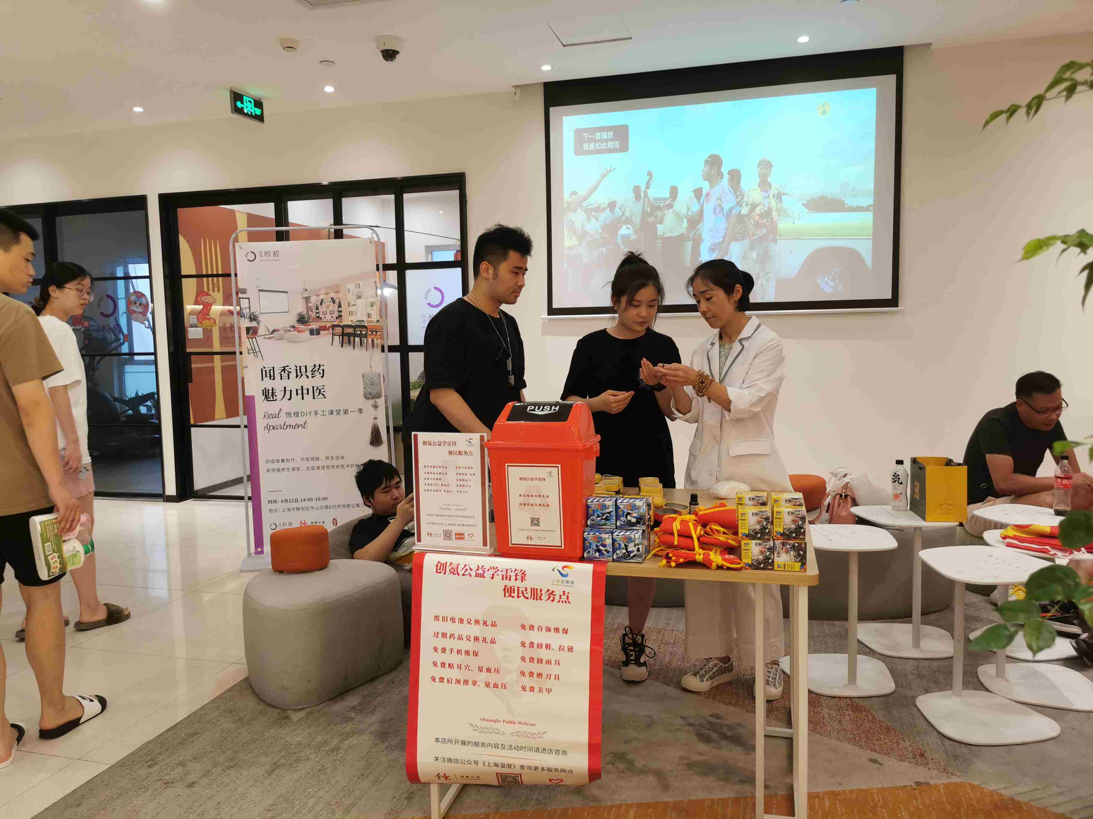 8月22日上午,创氪公益来到静安区芷江西路街道所属的中山北路835号悦樘公寓内开展了一场别开生面的防疫香囊DIY制作和废旧电池兑换礼品的公益体验活动.