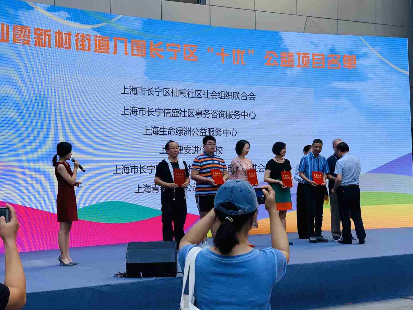 9月9日上午,仙霞新村街道 2020年公益伙伴日活动隆重举行,创氪公益(上海市长宁信盛社区事务咨询服务中心)喜获长宁区十优公益活动品牌入围奖,长宁区民政局副局长、社会组织管理局局长陈汉传亲自为创氪公益创始人董德明授荣誉证书。