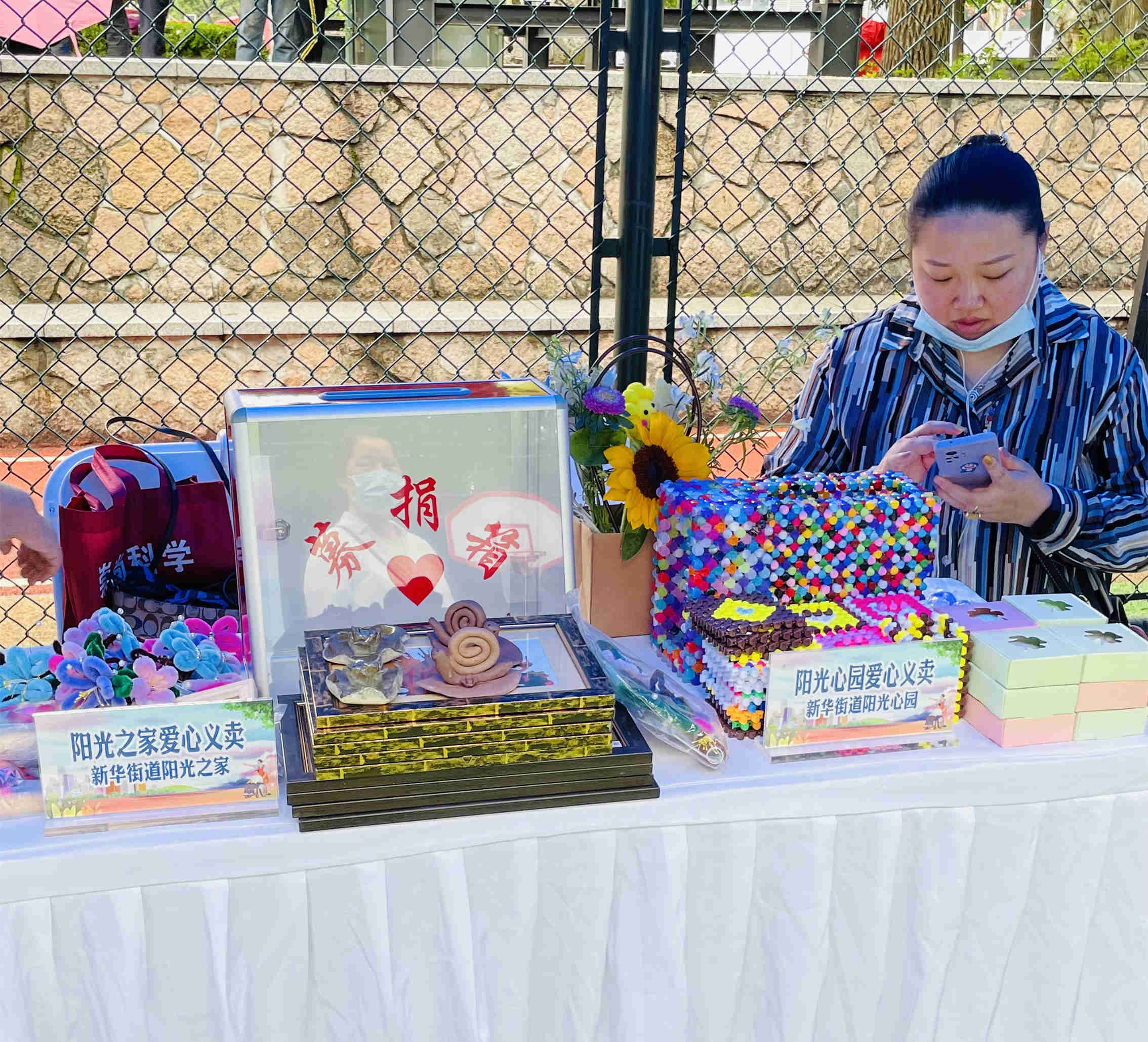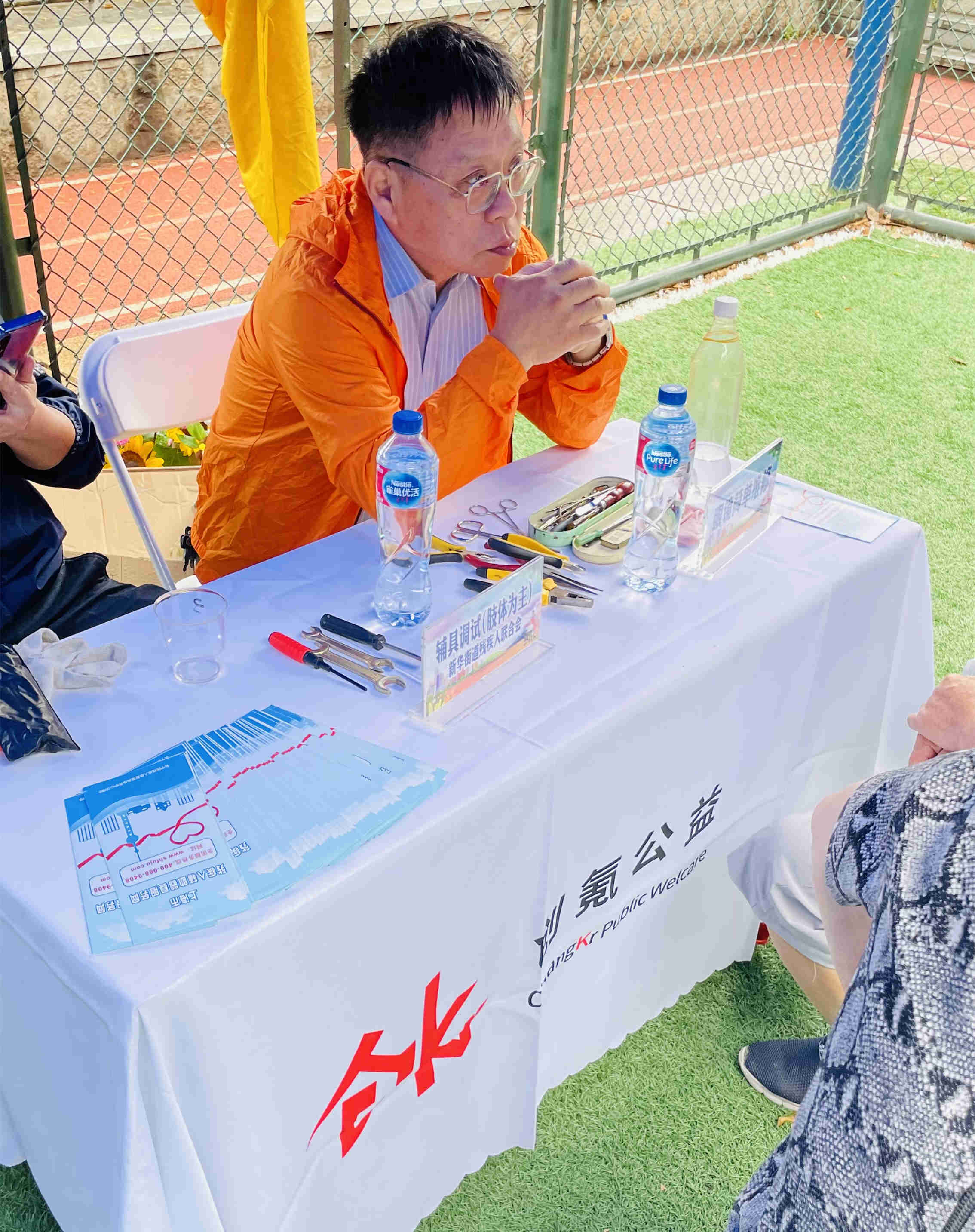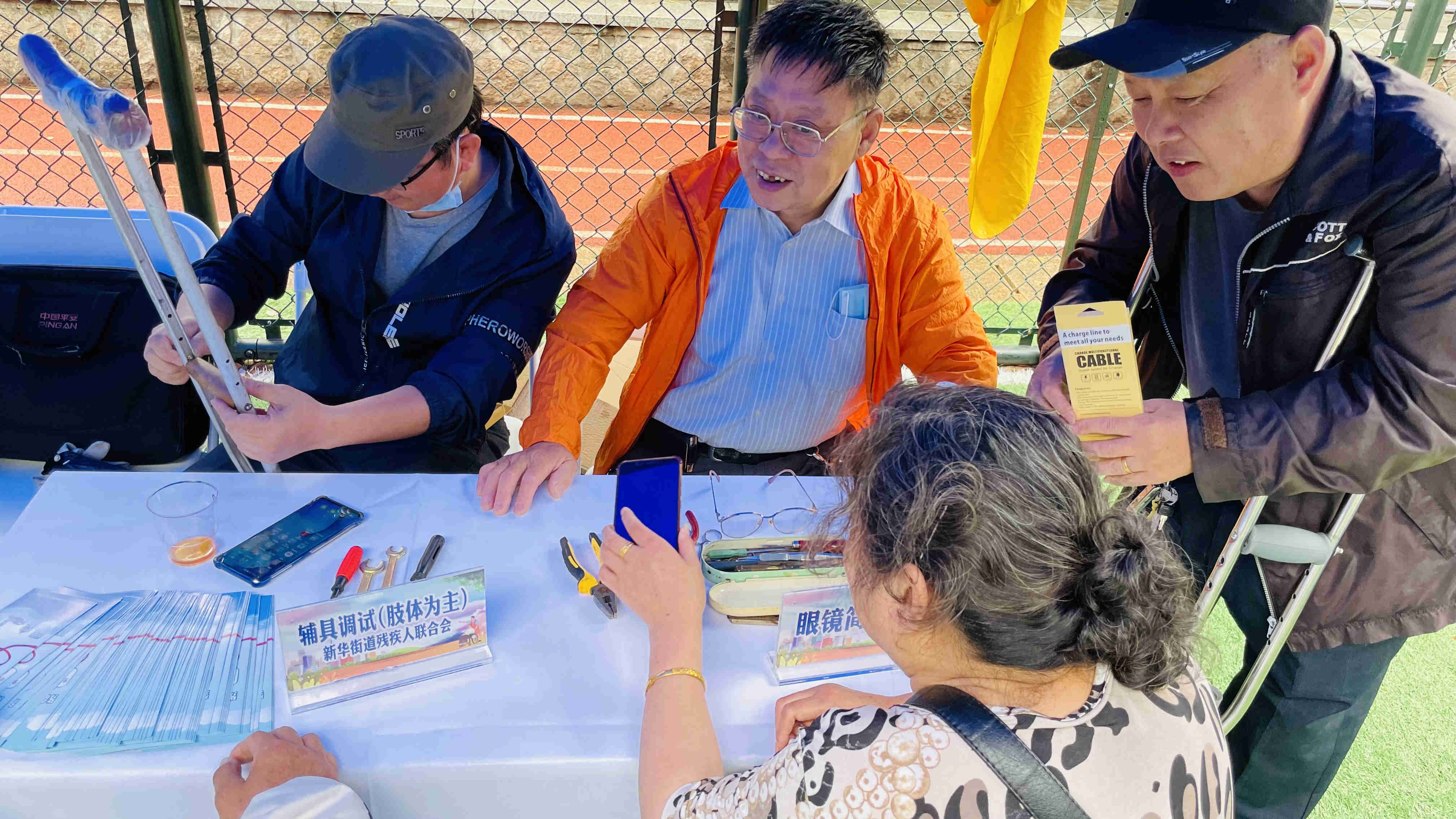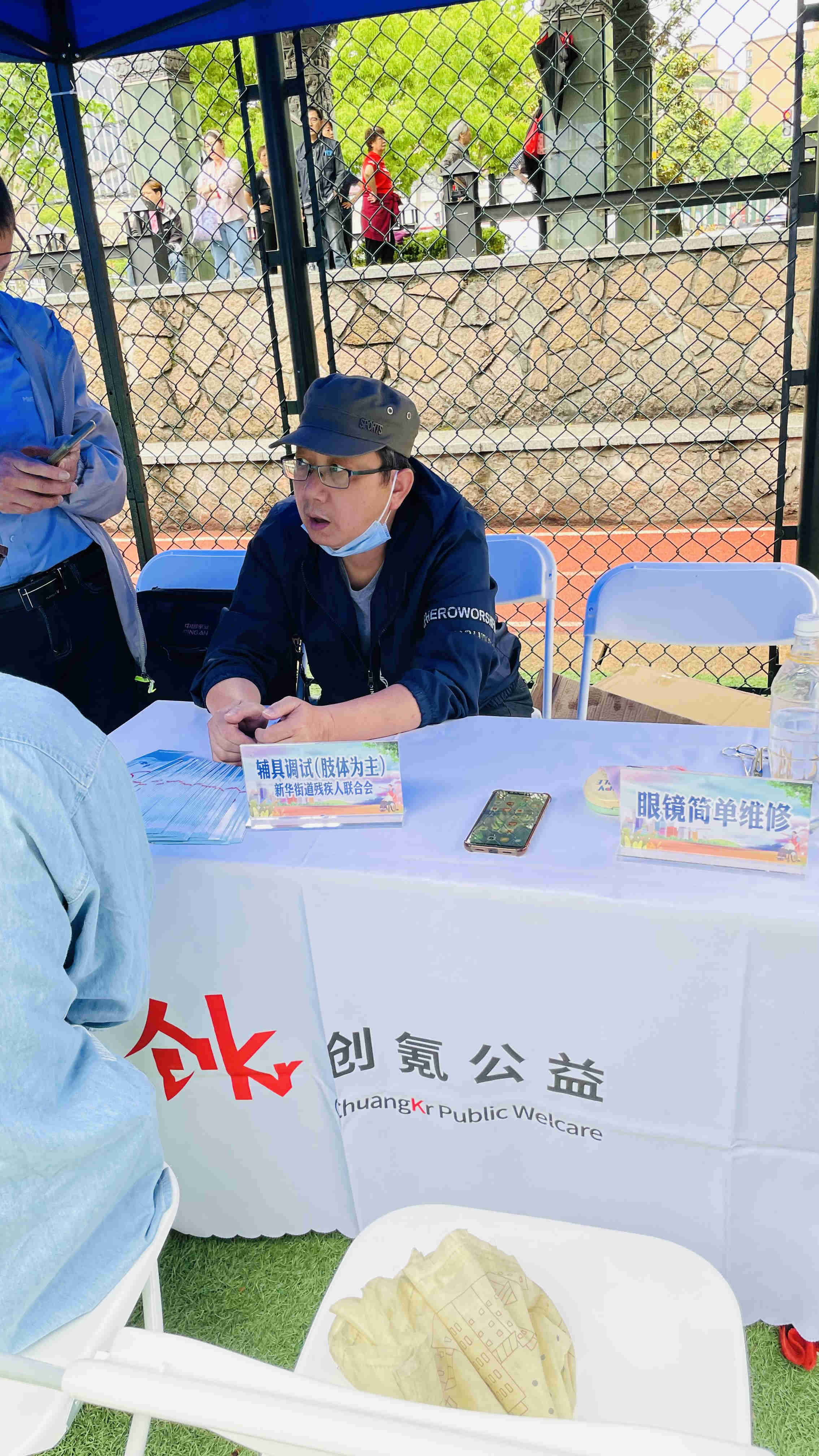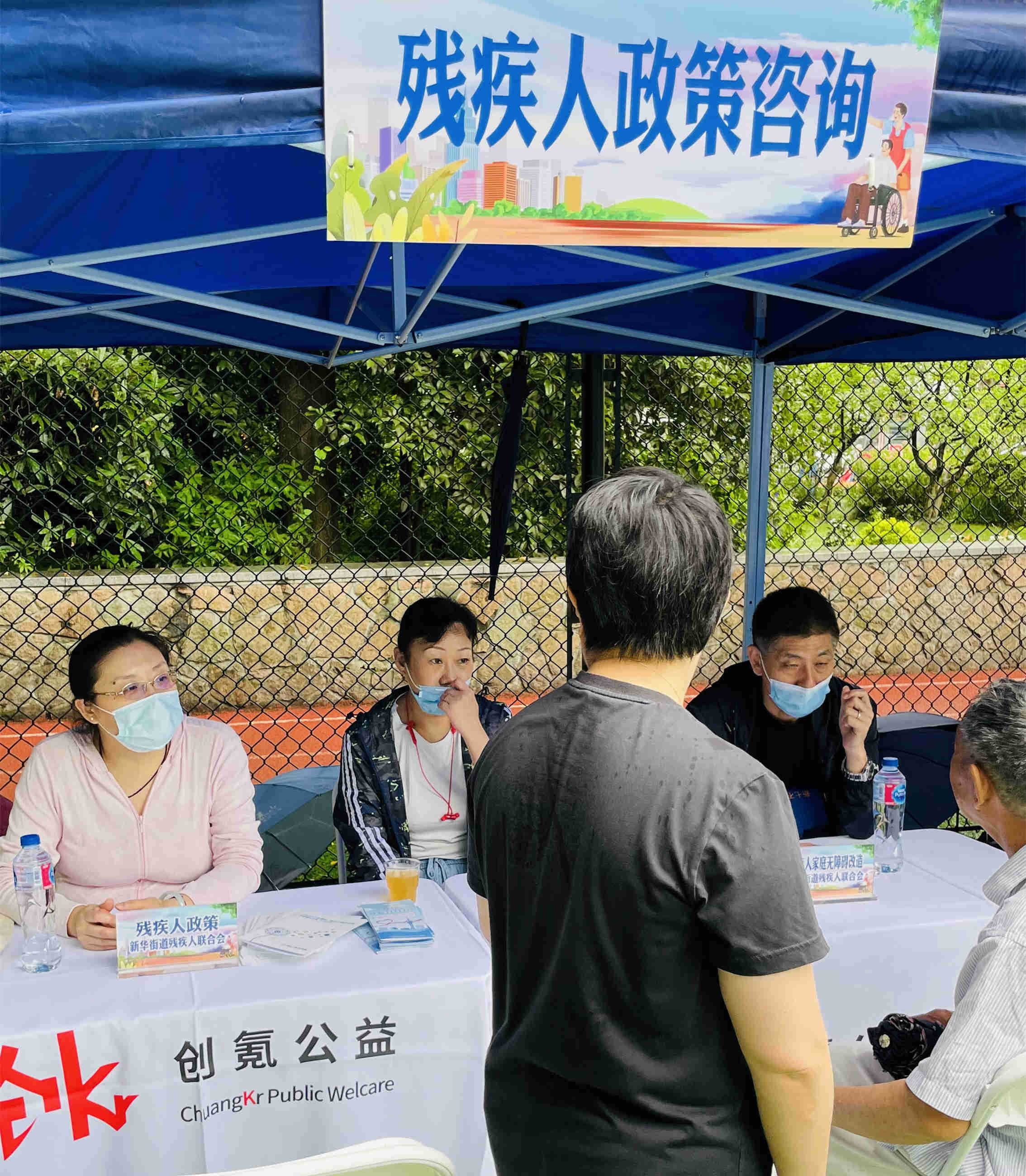 为庆祝第三十一次全国助残日和第二十二次上海助残周,5月13日,在长宁区残联的指导下,创氪公益和新华路街道办事处联合街道残疾人联合会共同开展了主题为“平等参与共享,促进融合发展”的助残活动。此次活动聚焦残健共融,参与共享。活动现场设立了17个服务项目,分别为:残疾人职业技能展示、社区生活服务、健康卫生服务、政策咨询、爱心义卖、辅具调试和共融游戏七大版块,吸引周边居民近200人次共同参与。 残疾技师们各怀技能,现场与居民开展互动,展示自我风采。 街道阳光心园、阳光之家的志愿者和学员们开展爱心义卖活动,传递正能量。此次义卖所筹善款将全部捐助给上海市慈善基金会长宁区代表处。