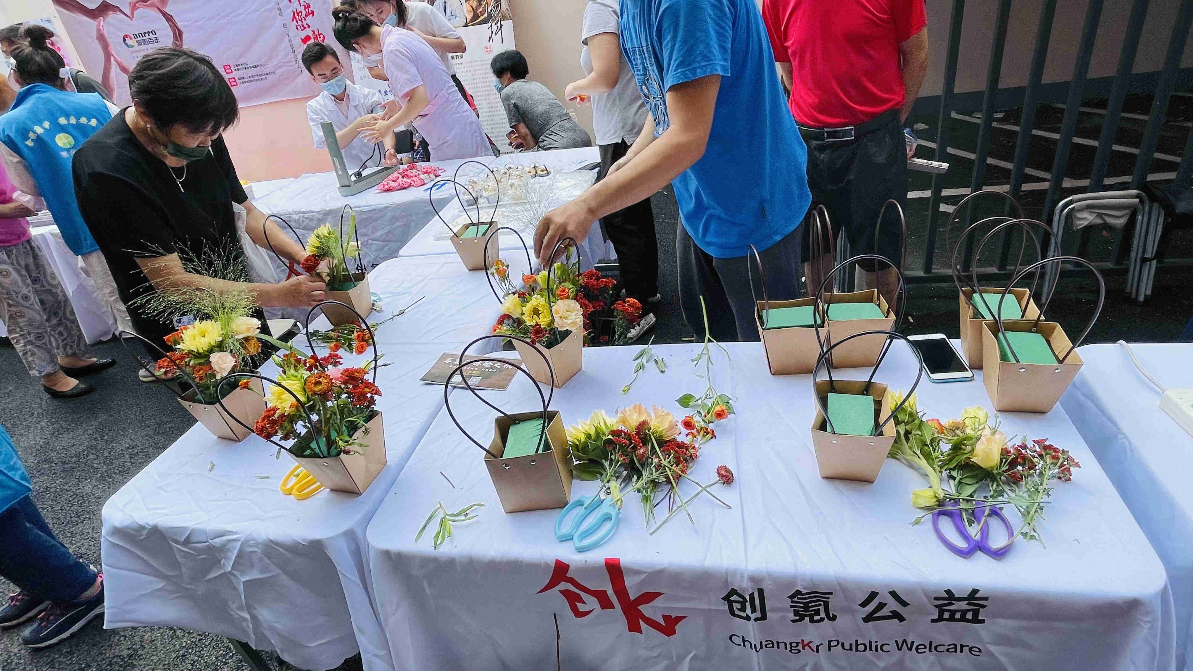 本次活动内容有小家电维修、中医义诊、肩颈推拿、残障人士制作的手工蛋糕、插花公益赠送等,让周边的居民们体验社区公益服务、感受残障人士为社区居民带来的温暖。